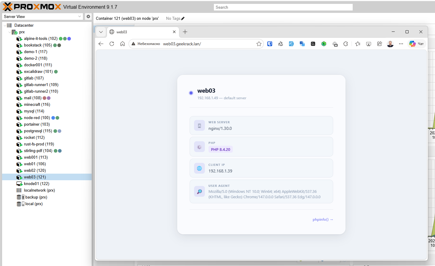 Сайт по умолчанию (catch-all) всегда присутствует: показывает информацию о сервере, версии ПО, IP клиента. Полезно для проверки того, что сервер вообще жив.